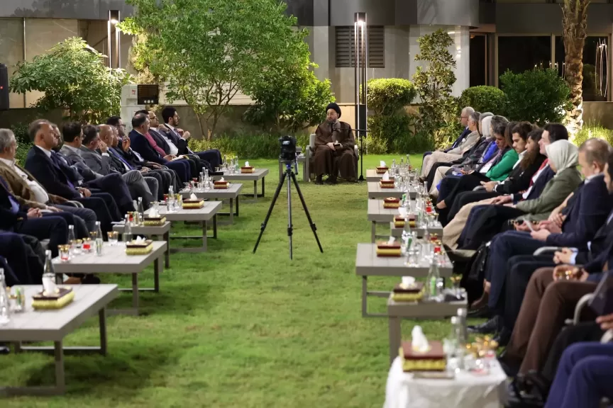 شهد اللقاء مناقشة واقع التجربة العراقية وسبل تطوير الأداء الوطني في المجالات البحثية والفكرية حيث أكد سماحة السيد الحكيم على أهمية دور النخب الأكاديمية والبحثية في تصحيح الصورة عن العراق وإبراز منجزاته مشيدًا بجهود الباحثين العراقيين في المؤسسات الدولية لتعزيز حضور العراق الإيجابي في المحافل العالمية