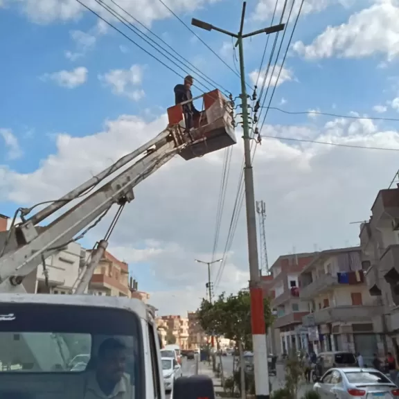 صيانة كشافات الإنارة ومراجعة الاعمدة المتهالكة بابوالمطامير
