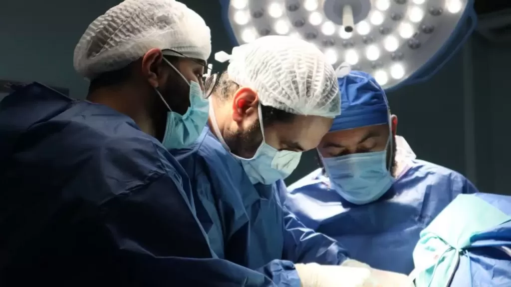 الأستاذ الدكتور أنس سالم استشاري عظام ، والدكتور أحمد فكيه استشاري عظام ، والدكتور أحمد الزعفرانى استشاري عظام ، والدكتور محمد زيتون استشاري عظام ، والدكتور محمد سلام ، والدكتور محمد نصر ، والدكتور محمد عبد المطلب ، والدكتور خالد عبدالله ، وأطباء التخدير : والدكتور السيد عمران ، والدكتور عبد الحليم الفقي، والدكتور عمرو الملاح ، والدكتور محمد طارق، والفريق الطبي المعاون معهم من هيئة تمريض العمليات وقسم العظام ، ومكافحة العدوى ، بالإشتراك مع باقي فرق العمل بالمستشفى ، تحت إشراف رئيس قسم العظام والدكتور طارق ابيش