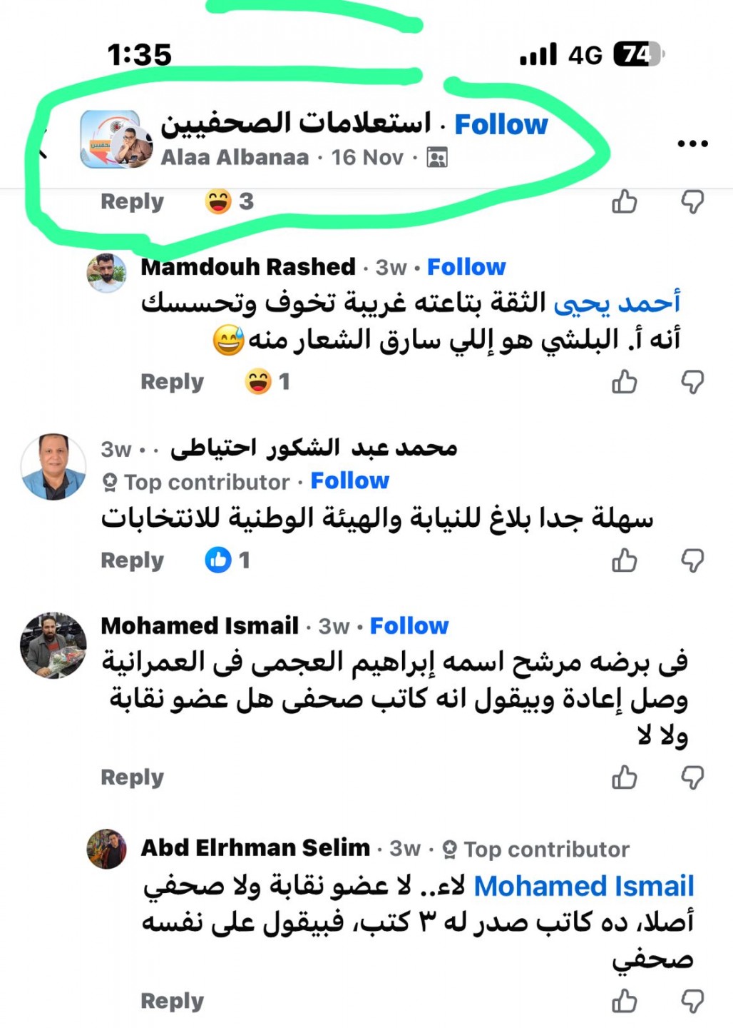 - أدعى في حملاته الإعلانية ولافتات الشوارع أنه صحفي، ومنشور جروب النقابة يكشف أنه ليس عضوًا.