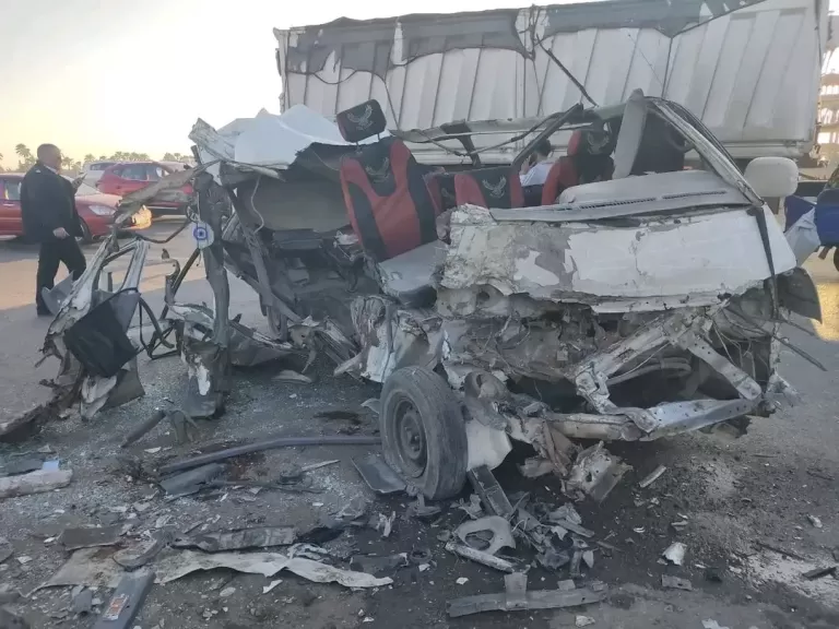 بالأسماء...4 وفيات و14 مصابا في حادث تصادم سيارة ميكروباص وأتوبيس على الطريق الصحراوي البحيرة