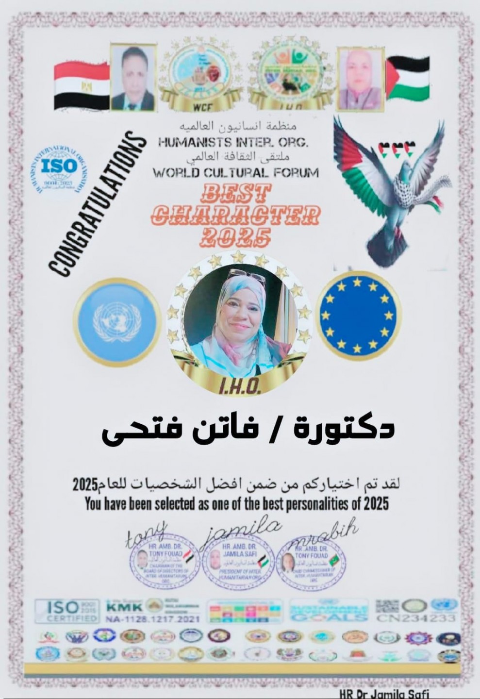 منظمة ”إنسانيون العالمية” تُكرّم الدكتورة فاتن فتحي وتعلنها شخصية قيادية مؤثرة لعام 2025