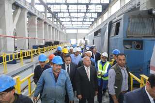 بالصور ... وزير النقل يتفقد أعمال عمرة وصيانة الجرارات بورش التبين للسكك الحديدية
