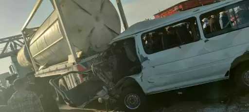 ميكروباص تحول لخردة.. مصرع 3 مواطنين وإصابة 18 في حادث تصادم مروع مع سيارة تريلا على الطريق الصحراوي بالبحيرة
