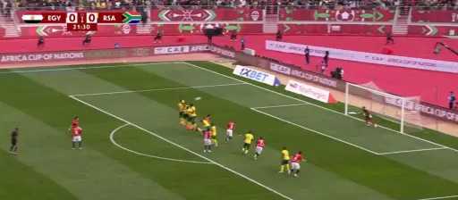 وفي الدقيقة 21 سدد عمر مرموش ركلة حرة، مرت من بجوار مرمي منتخب جنوب إفريقيا.