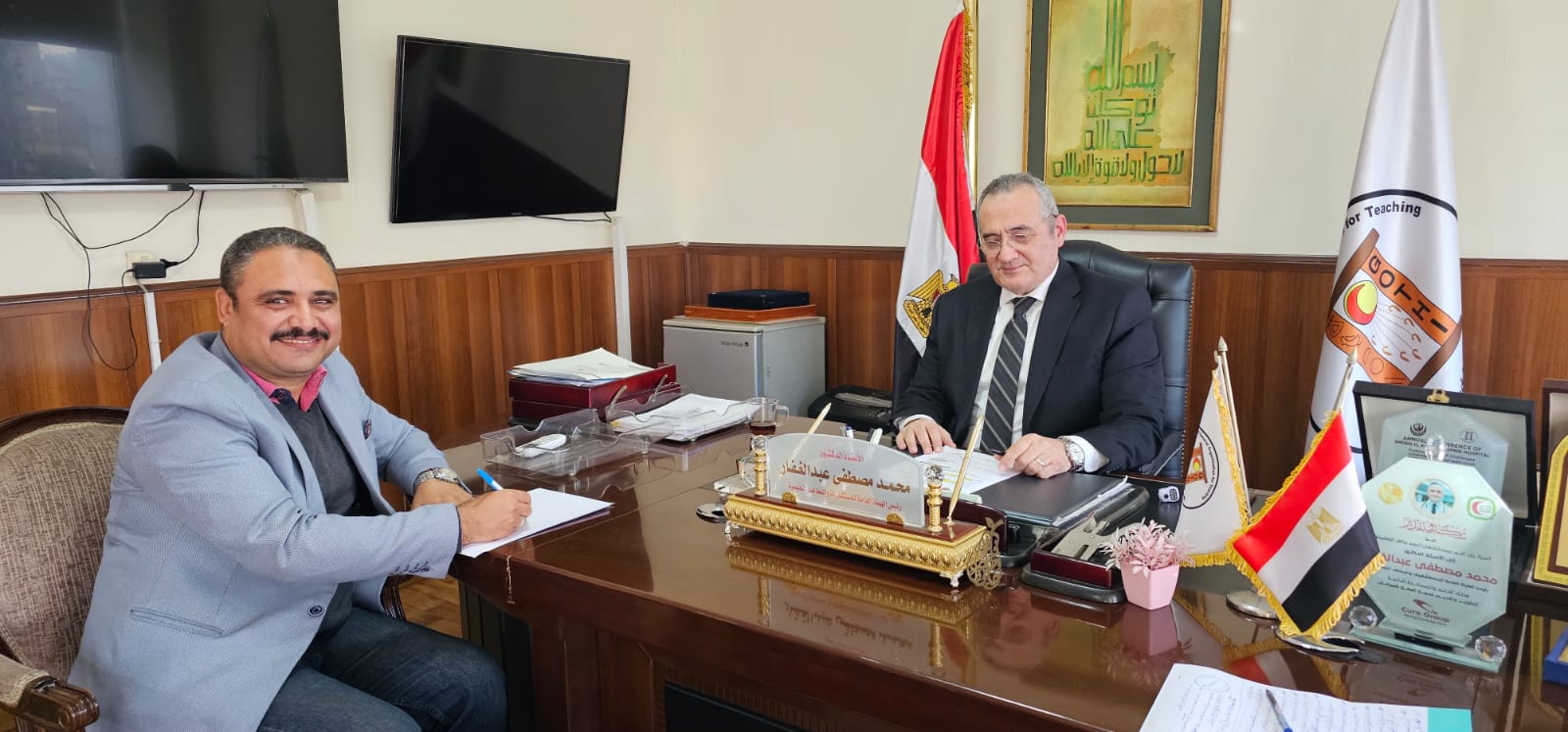 المستشار ربيعي حمدي والكاتب الصحفي محمود أبو السعود يهنئان الدكتور محمد عبد...