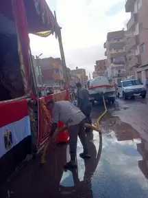 كوم حمادة.. جهود مكثفة لرفع مياه الأمطار وضمان سهولة وصول المواطنين للجان الانتخابية