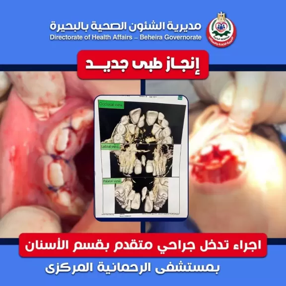 في إنجاز طبي جديد يُضاف إلى سلسلة النجاحات التي تحققها المنظومة الصحية بالمحافظة، أعلن عن نجاح الفريق الطبي بقسم الأسنان بمستشفى الرحمانية المركزي في إجراء تدخل جراحي متقدم لخلع سن زائد مدفون بالفك العلوي (Palatally positioned supernumerary tooth) لطفل يبلغ من العمر 7 سنوات، في عملية دقيقة تطلبت مهارة عالية وخبرة متخصصة في جراحات الفم والأسنان.
