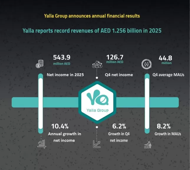 أعلنت "مجموعة يلا" المحدودة، التي تتخذ من الإمارات العربية المتحدة مقراً لها ومالكة أكبر منصة تواصل اجتماعي وألعاب في الشرق الأوسط وشمال إفريقيا عن نتائجها المالية غير المدققة للعام المالي المنتهي 31 ديسمبر 2025 بالإضافة إلى النتائج المالية للربع الأخير من العام نفسه، مؤكدة استمرارها في تحقيق نمو مستقر وتعزيز مكانتها في قطاع الترفيه الرقمي المتنامي في المنطقة.