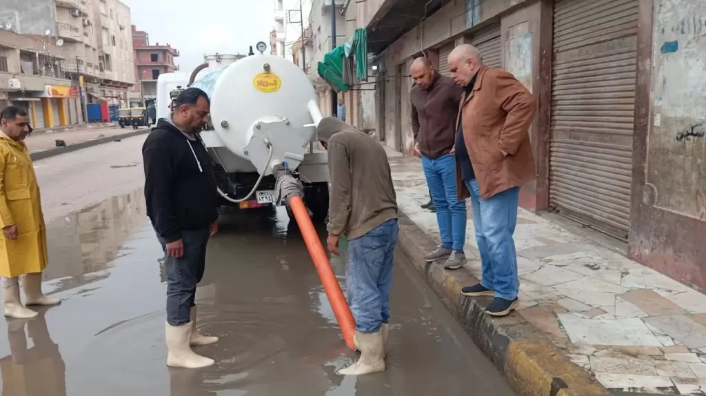 تحركات مبكرة لمواجهة الأمطار والطقس السيئ.. رفع تجمعات مياه الأمطار منذ الساعات الأولى بمدن وقرى البحيرة