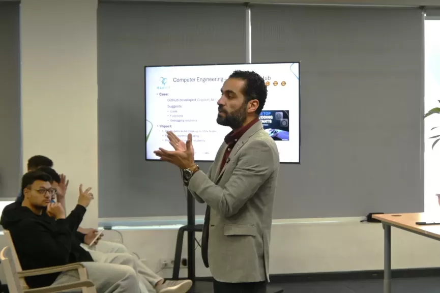 وأضاف أن التفاعل الذي شهده اللقاء يعكس وعي طلاب هندسة الكمبيوتر بأهمية تطوير مهاراتهم، حيث طرحوا العديد من التساؤلات حول مستقبل الوظائف المرتبطة بالذكاء الاصطناعي، والمسارات الأكثر طلباً في السوق، مؤكداً أن هناك اهتماماً ملحوظاً ببرامج مثل “AI Developer” و“AI Vibe Coder”، باعتبارهما من المسارات الحيوية التي تلبي احتياجات سوق العمل الحالي.
