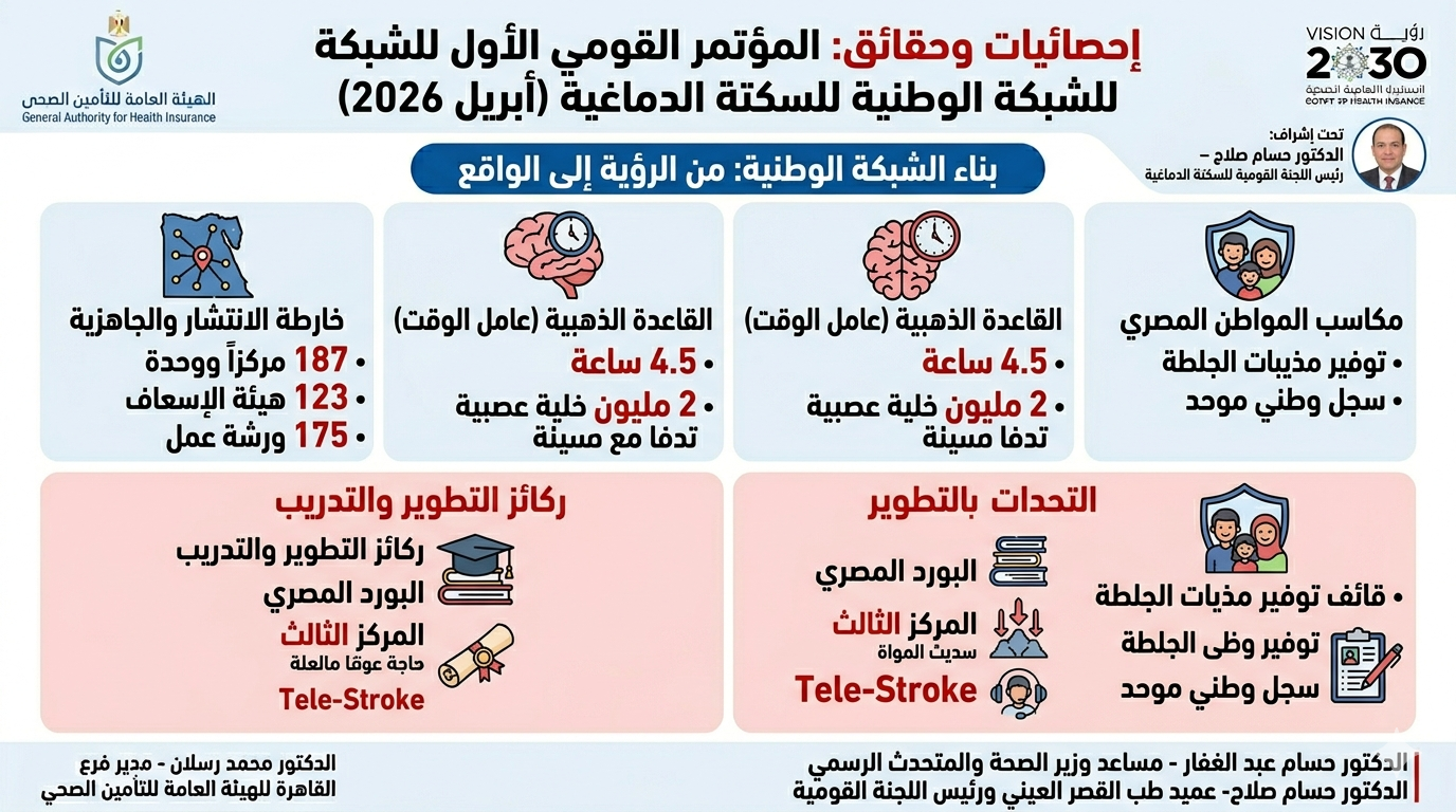 في سباقٍ محموم مع الزمن، حيث تساوي الدقيقة الواحدة حياة إنسان أو عجزاً دائماً، فجّرت القاهرة مفاجأة طبية من العيار الثقيل بوضع حجر الأساس لـ "الشبكة الوطنية للسكتة الدماغية". هذا الحراك الذي لم يكن مجرد مؤتمر علمي، بل "إعلان حرب" تقوده قاطرة القصر العيني بالتنسيق مع كافة مفاصل الدولة، لإنهاء سطوة المرض الذي يتربع على عرش ثالث أسباب الوفاة في مصر.