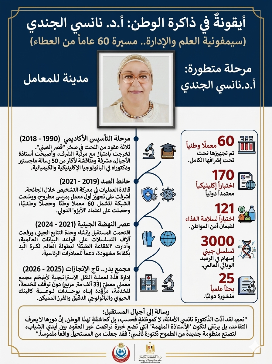 ” قائدةُ العبورِ المعملي” ... نانسي الجندي : سيمفونيةُ العلمِ التي أعادت صياغةَ الأمنِ الصحي المصري